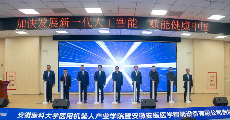 3月15日上午,安徽医科大学、北京天智航医疗科技股份有限公司、江淮前沿技术协同创新中心及安徽邦泰控股集团共建的医用机器人产业学院暨安徽安医医学智能设备有限公司启航仪式在安徽医科大学举行。安徽省委教育工委委员、省教育厅副厅长刘业勋,安徽医科大学党委书记王琦等领导嘉宾出席,邦泰控股集团董事长陈齐参加仪式,仪式由安徽医科大学党委常委、宣传部部长秦楠主持。